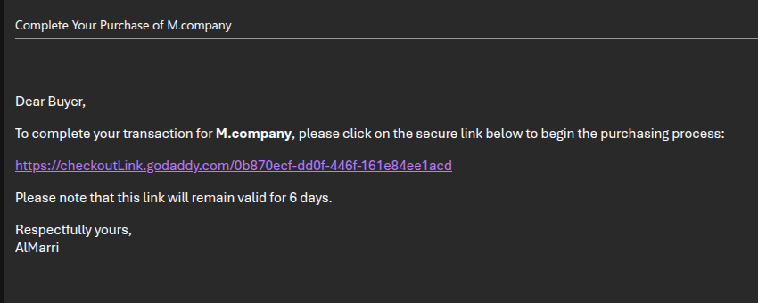 All transactions and escrow services will be processed through GoDaddy Inc.